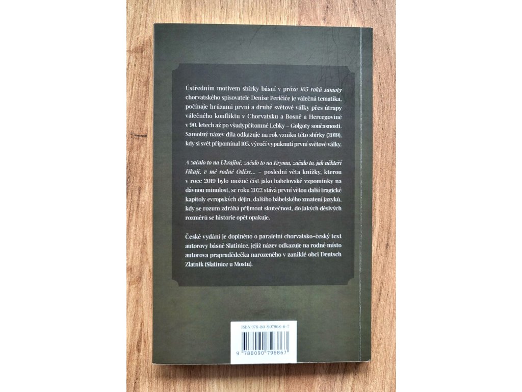 Ústředním motivem sbírky básní v próze 105 roků samoty chorvatského spisovatele Denise Peričiće (*1968) je válečná tematika, počínaje hrůzami první a druhé světové války přes útrapy válečného konfliktu v Chorvatsku a Bosně a Hercegovině v 90. letech až po všudypřítomné Lebky – Golgoty současnosti. Samotný název díla odkazuje na rok vzniku této sbírky (2019), kdy si svět připomínal 105. výročí vypuknutí první světové války.