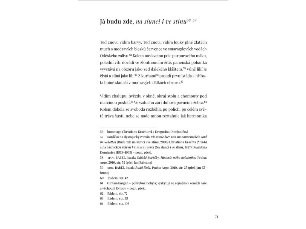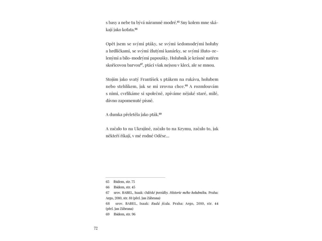 A začalo to na Ukrajině, začalo to na Krymu, začalo to, jak někteří říkají, v mé rodné Oděse… – poslední věta knížky, kterou v roce 2019 bylo možné číst jako babelovské vzpomínky na dávnou minulost, se roku 2022 stává první větou další tragické kapitoly evropských dějin, dalšího bábelského zmatení jazyků, kdy se rozum zdráhá přijmout skutečnost, do jakých děsivých rozměrů se historie opět opakuje.