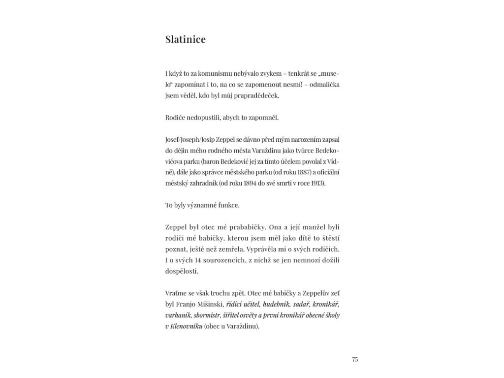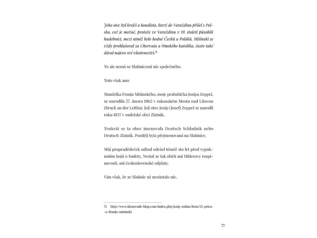 České vydání je doplněno o paralelní chorvatsko-český text autorovy básně Slatinice, jejíž název odkazuje na rodné místo autorova prapradědečka narozeného v zaniklé obci Deutsch Zlatnik (Slatinice u Mostu).