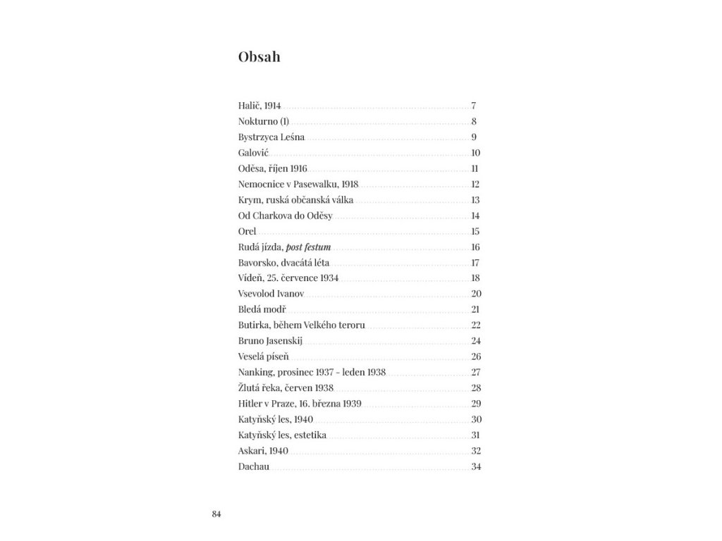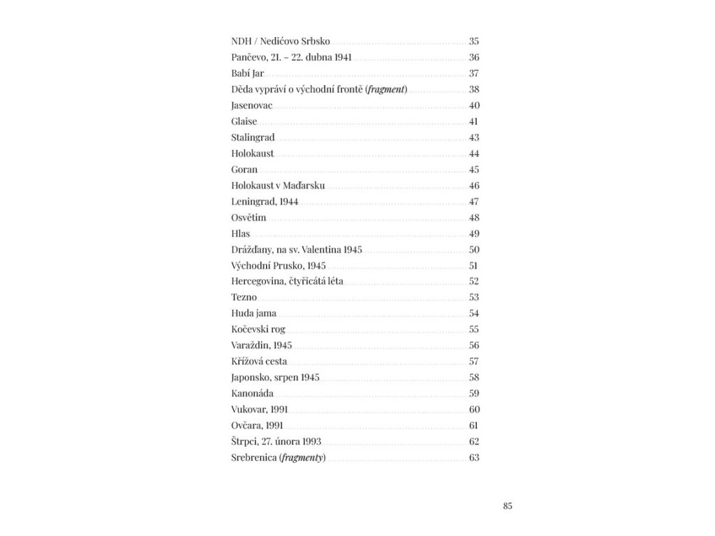Sbírka básní v próze, v níž autor zpracovává tematiku válečných konfliktů od první světové války do současnosti.