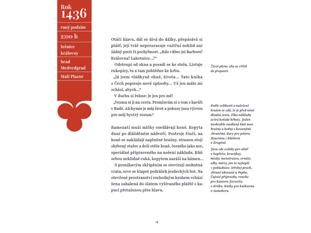 První díl zamýšlené trilogie o Barboře Celjské je součástí širšího záměru chorvatské autorky Mirjany Novak Perjanec na vytvoření projektu v oblasti kultury a cestovního ruchu. Tento projekt bude prostřednictvím literárního příběhu, materiálních předmětů i nemateriálních kulturních akcí propojovat města, regiony a země spjaté s touto pozoruhodnou historickou osobností opředenou množstvím záhad a tajemství.