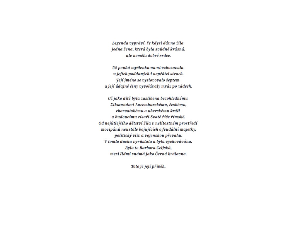 Příběh svůdně krásné české královny Barbory Celjské, mezi lidmi známé jako Černá královna.