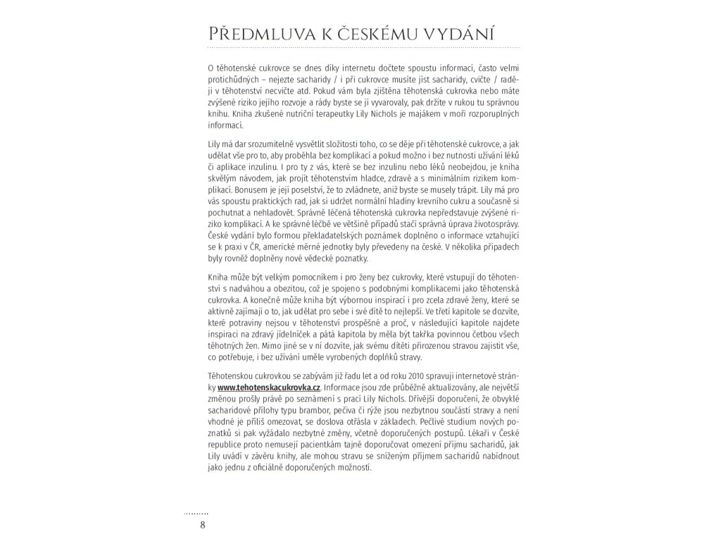 Český překlad doplnila o informace vztahující se k praxi v ČR MUDr. Hana Krejčí, Ph.D., naše přední odbornice na problematiku těhotenské cukrovky a mj. rovněž správkyně webu www.tehotenskacukrovka.cz.